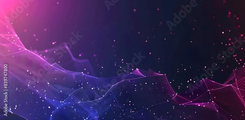 The watermark will not be included on Poster.: Abstract network background with pink and purple lines, glowing mesh and dots on dark gradient