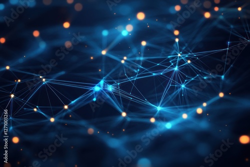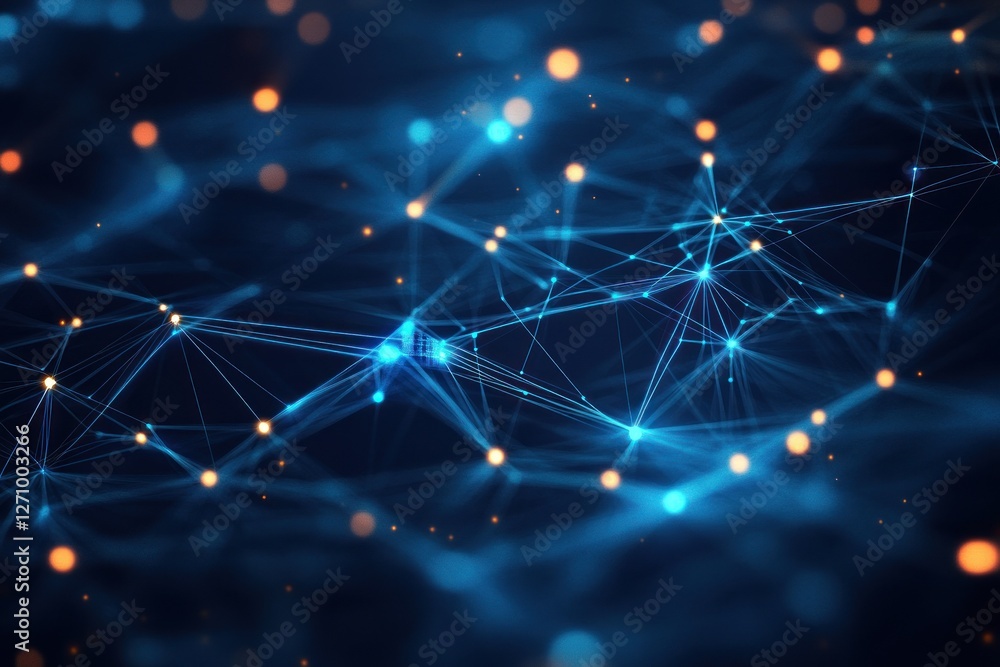 Poster : Abstract network connection, glowing nodes and lines on dark blue background -