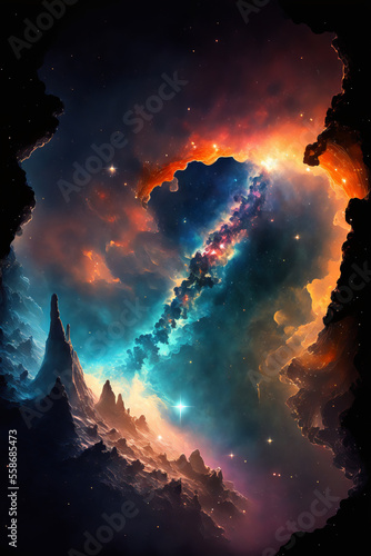 Poster abstract outer space endless nebula galaxy background. generative ai