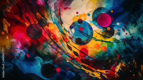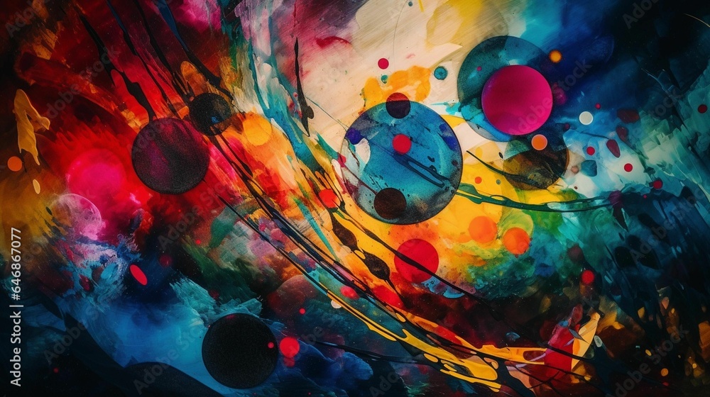 Poster : Abstract painting with vibrant colors arranged in a circular pattern, ai-generated -