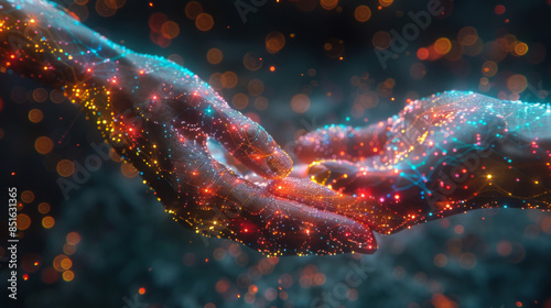 The watermark will not be included on Poster.: Abstract palm hands touching brain with network connections, innovative technology in science and co