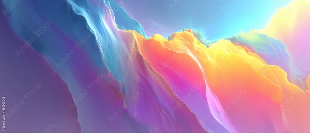 The watermark will not be included on Poster.: Abstract pastel gradient background with flowing shapes and vibrant colors creating a dreamy and eth