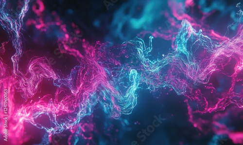 The watermark will not be included on Poster.: Abstract patterns of neon lines forming a swirling digital vortex of vivid magenta and teal -