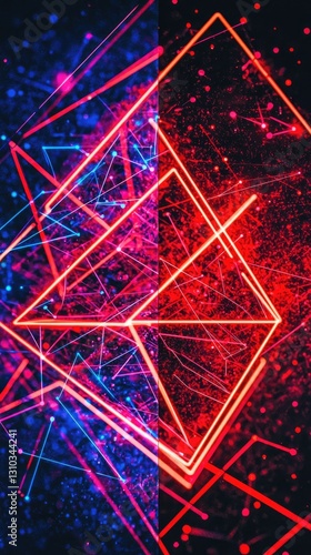 Poster abstract polygonal shape and dots on a red and blue background for website banners - Posters Poster abstract polygonal shape and dots on a red and blue background for website banners - Posters