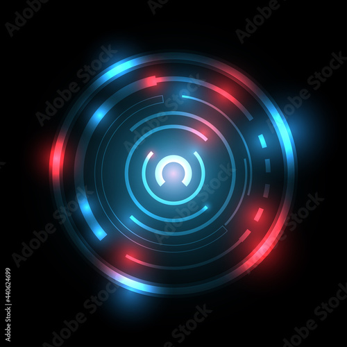 Poster : Abstract red and blue glow technology circle shining on infinite space background elements of futuri