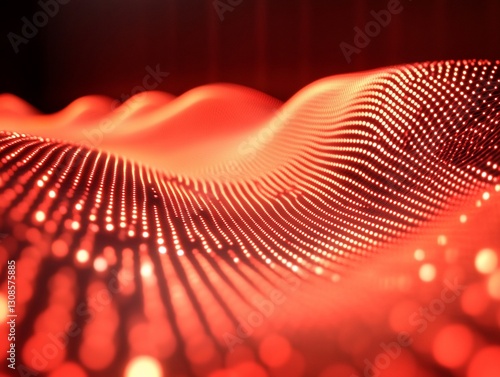 The watermark will not be included on Poster.: Abstract red glowing wave of particles -