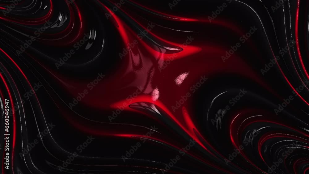 The watermark will not be included on Poster.: Abstract red wave fractal pattern flowing on black - glossy hi-tech modern loop able animation