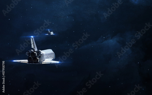 The watermark will not be included on Poster.: Abstract scientific background - glowing planet in space, nebula and stars - elements of this image f