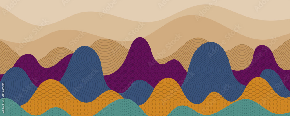 The watermark will not be included on Poster.: Abstract seamless wavy line pattern design with nature inspired vector illustration