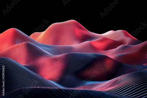 The watermark will not be included on Poster.: Abstract setting featuring glowing waves against a dark backdrop - technology: sophisticated futurist