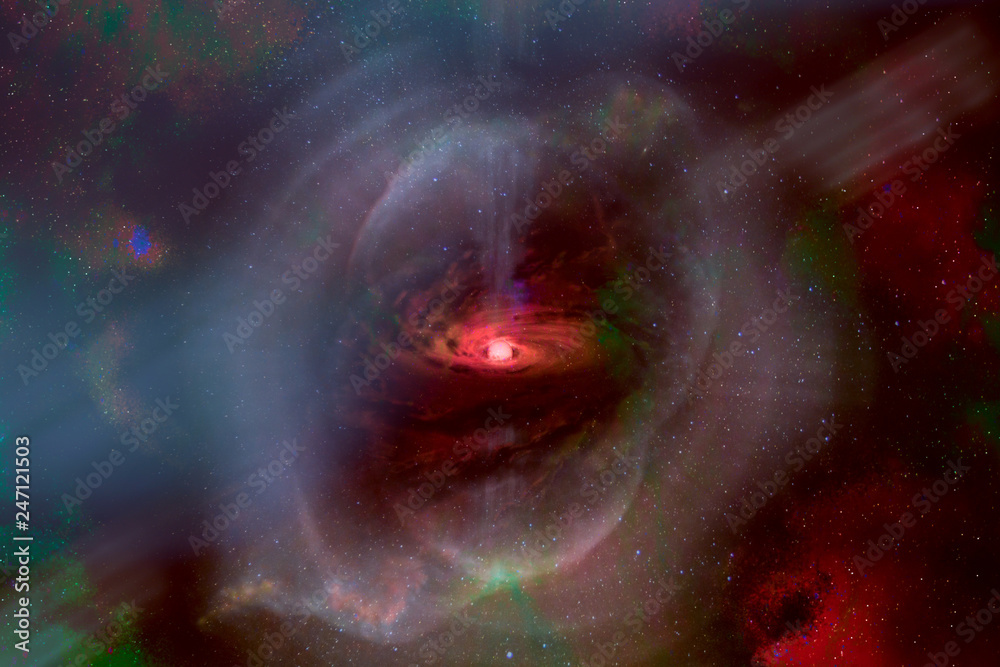 The watermark will not be included on Poster.: Abstract space wallpaper - black hole with nebula over colorful stars and cloud fields in outer space