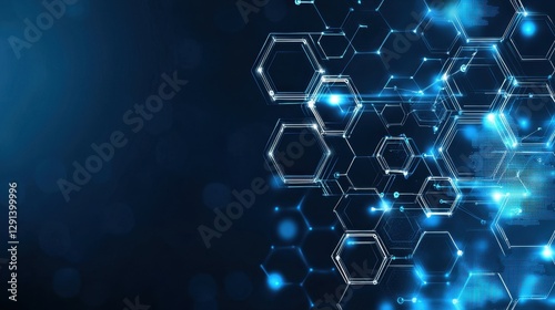 Abstract technology background with glowing hexagons and blue light effects for innovation and digitPoster