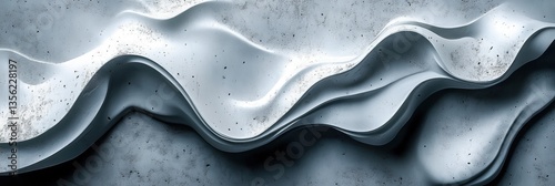Poster abstract textured waves of smooth white material on a gray concrete surface creating a contemporary
