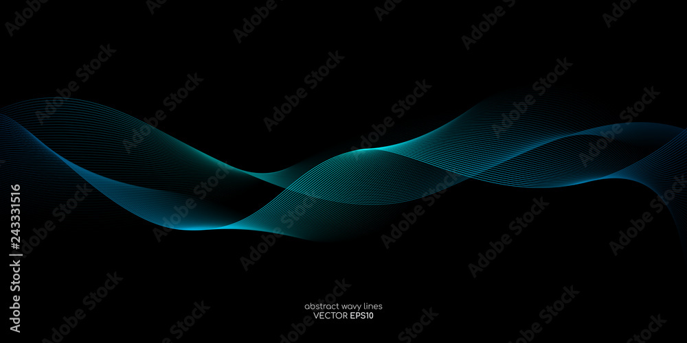 The watermark will not be included on Poster.: Abstract vector wave line flowing green and blue color isolated on black background for design eleme