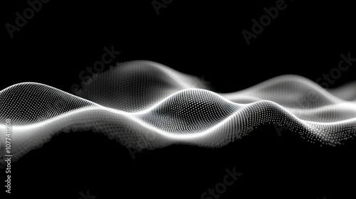 The watermark will not be included on Poster.: Abstract wave pattern with white dots on a black background -