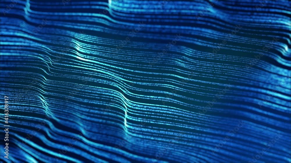 The watermark will not be included on Poster.: Abstract waves curves ripple on blue background as 3d template video animation loop