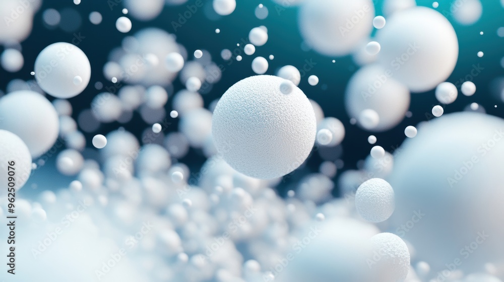 The watermark will not be included on Poster.: Abstract white spheres appear to gently float against a soft light backdrop, evoking a sense of calm