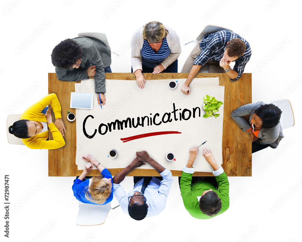 The watermark will not be included on Poster.: Aerial view of multiethnic group with communication concept