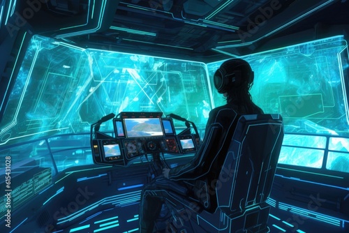 Poster alien piloting high-tech spacecraft, commuting to distant colony, created with generative ai - Posters Poster alien piloting high-tech spacecraft, commuting to distant colony, created with generative ai - Posters