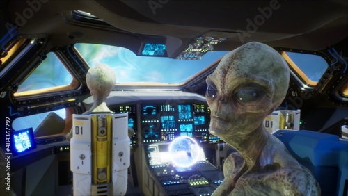 The watermark will not be included on Poster.: Aliens fly through a wormhole in an uncharted part of the universe in their sci-fi spaceship - the co