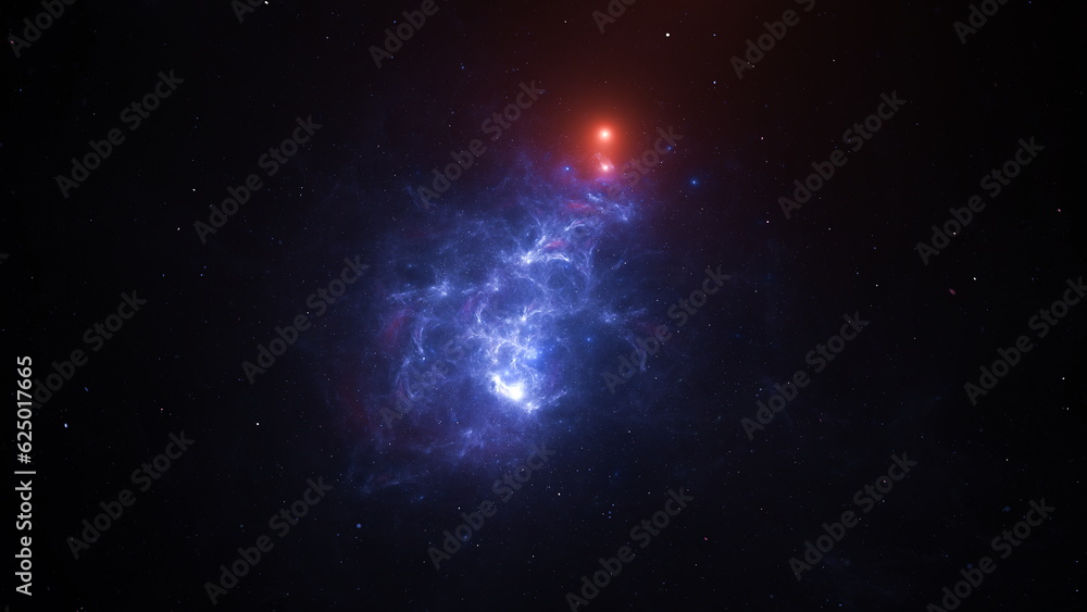 The watermark will not be included on Poster.: Amazing galaxy cluster of massive stars in space - boundless universe, gas nebula in outer space - 3d