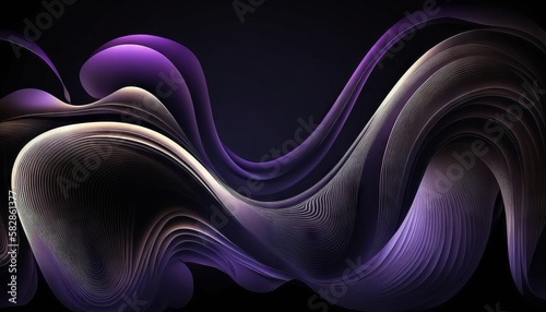 Poster : An abstract background of flowing waves and ripples with black background - generative ai -