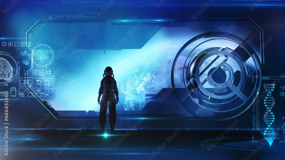 The watermark will not be included on Poster.: An astronaut explores the planet from orbit - 3d render