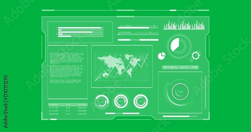 The watermark will not be included on Poster.: Animation of statistics and financial data processing on screen over transparent background