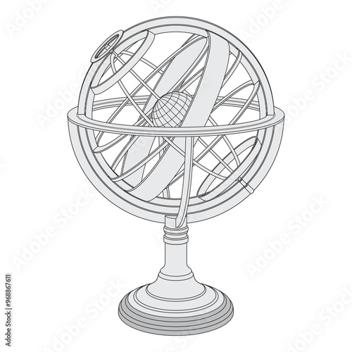 The watermark will not be included on Poster.: Armillary sphere on a stand - model of the earth in space - object isolated on white background -