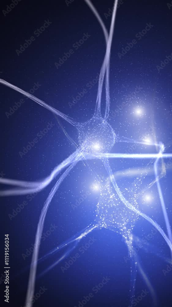 The watermark will not be included on Poster.: Artistic glowing neuron cells with dots and lights vertical background -