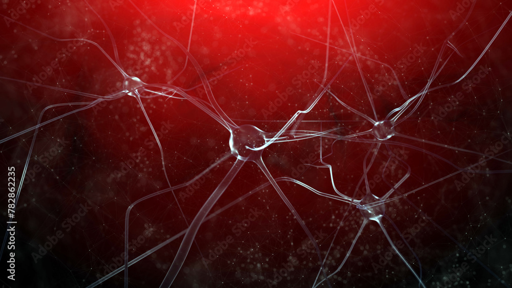 The watermark will not be included on Poster.: Artistic neuron cells in the brain on red mysterious background illustration -