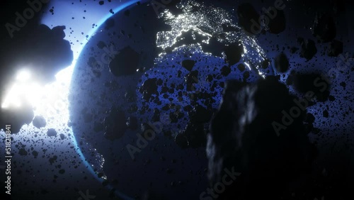 Poster asteroid in outer space. earth planet. realistic 4k animation.