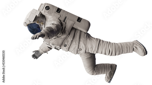The watermark will not be included on Poster.: Astronaut, person in spacesuit floating in outer space, isolated