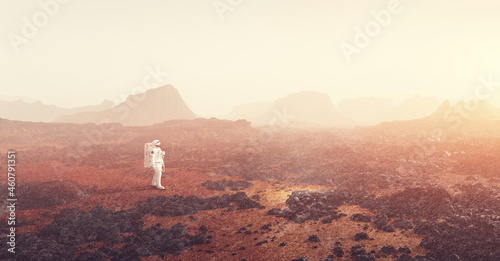 The watermark will not be included on Poster.: Astronaut doing space walk and explore planet such as mars -