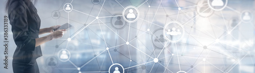 Poster : Background conceptual image with social connection lines on panoramic fone -