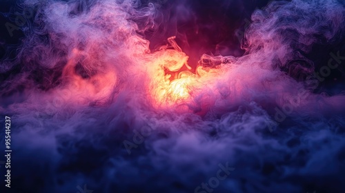The watermark will not be included on Poster.: Background of an empty room with smoke and neon light - dark abstract background
