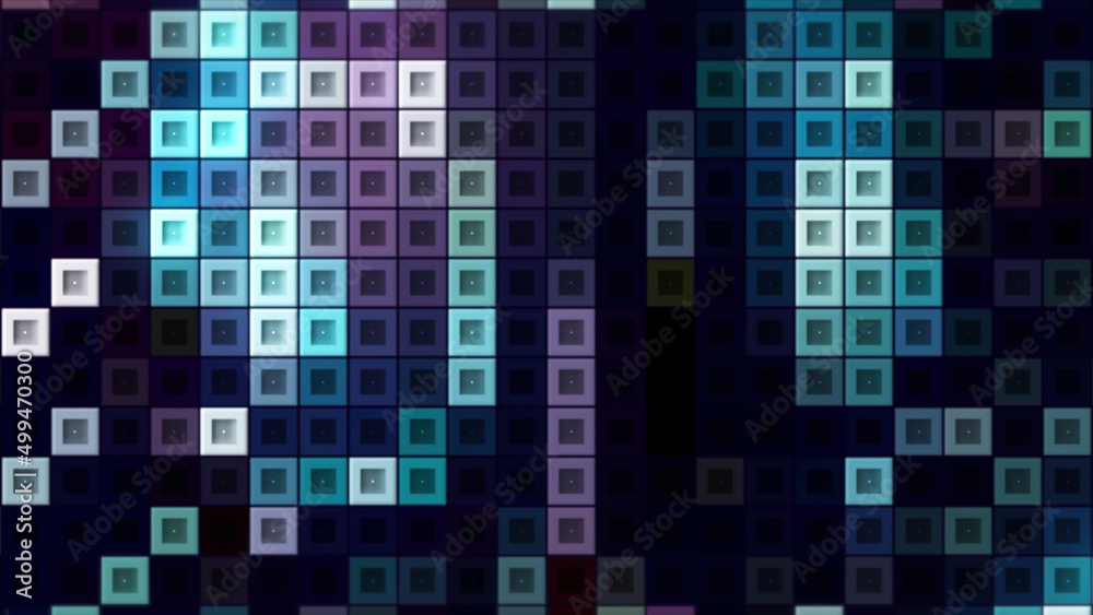 The watermark will not be included on Poster.: Background with colorful squares in tetris - motion - electronic tetris with moving neon squares - styl