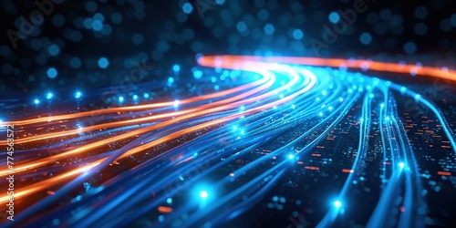 The watermark will not be included on Poster.: Background with the image of information transmission through light data cables - high-speed internet