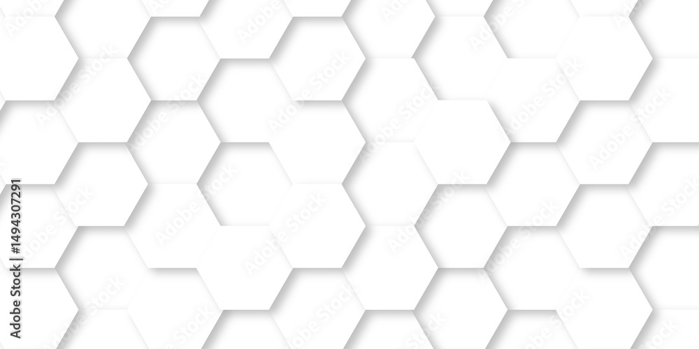 The watermark will not be included on Poster.: Background with white lines hexagonal structure futuristic white background and embossed hexagon , h