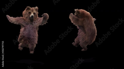 The watermark will not be included on Poster.: Bear dance cg fur 3d rendering animal realistic cgi vfx animation loop composition 3d mapping cartoo