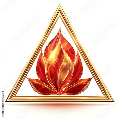 Poster : Beautiful abstract flame design in a golden triangular frame with vibrant red and orange colors, per