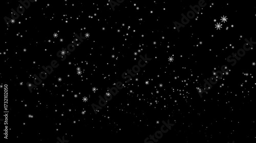 The watermark will not be included on Poster.: Beautiful loop falling moving white snowflakes particles animaiton on black abstract background -