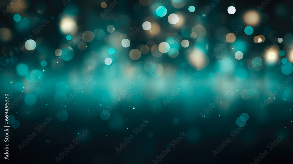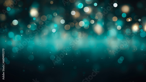 Poster beautiful teal color defocused lights bokeh abstract background