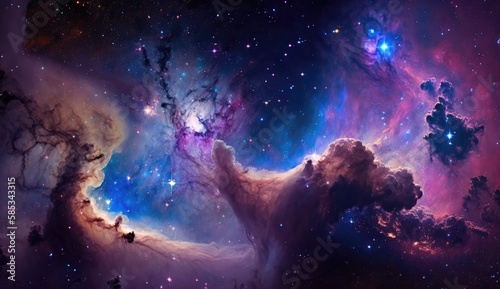 The watermark will not be included on Poster.: Beautiful travel in deep space and nebula made with generative ai