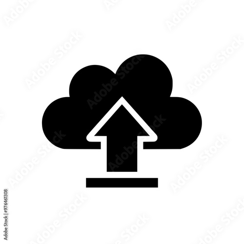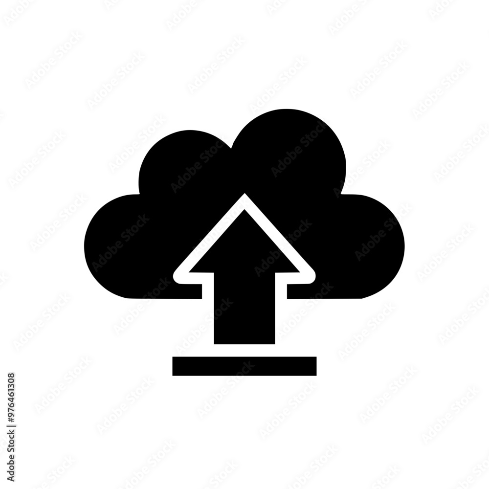 The watermark will not be included on Poster.: Black cloud upload icon symbolizing cloud storage or online data transfer in a minimalist design -