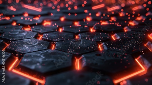 Poster black hexagonal grid with red glow