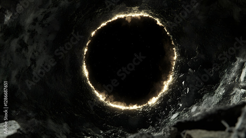 The watermark will not be included on Poster.: Black hole with light emerging from it in a cosmic and surreal space environment