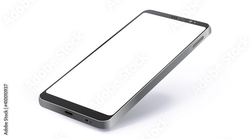 Poster : Black mobile phone realistic vector mockup with perspective view - smartphone screen isolated on whit
