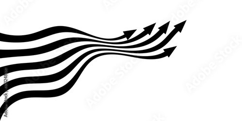 Poster black on white abstract perspective line stripes arrow with 3d dimensional effect isolated on white.