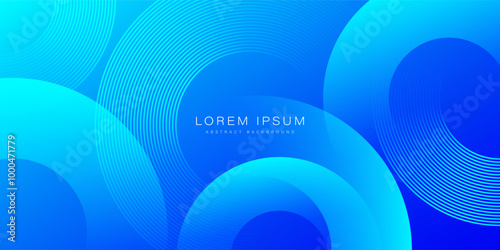 Poster blue abstract background with circles. modern simple bright blue geometric shapes design with lines